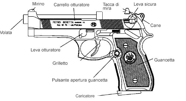 Caricatore弹夹 Mira准星 Tacca mira准星卡槽 Cursore撞针 Carrello滑轨 Proiettile/Corpi子弹