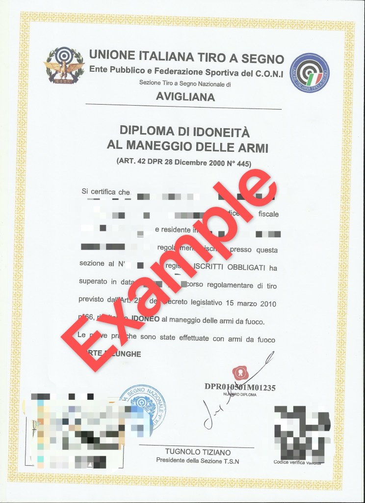 取得医学证明之后,带着所有身份文件前往当地靶场参加安全教育课(i corsi per ottenere il diploma di idoneità di maneggio delle armi)+打靶练习、考试。